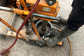 現場にあわせたエンジンタイプの削孔機を使用したダイヤモンド・ドリルを採用。